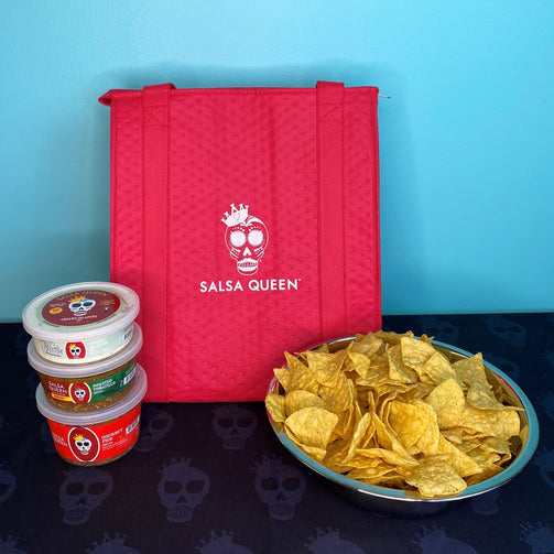 Ideal for individuals or small groups of 1-4 individuals. Contains our top 3 selling salsas along with a bag of chips, packaged in a branded insulated bag.
