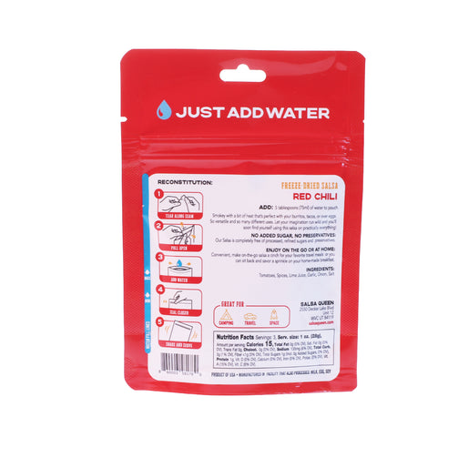 No more excuses with this freeze-dried salsa! Take this smoky red chili, with the just the right heat, anywhere, for the best food experience ever!